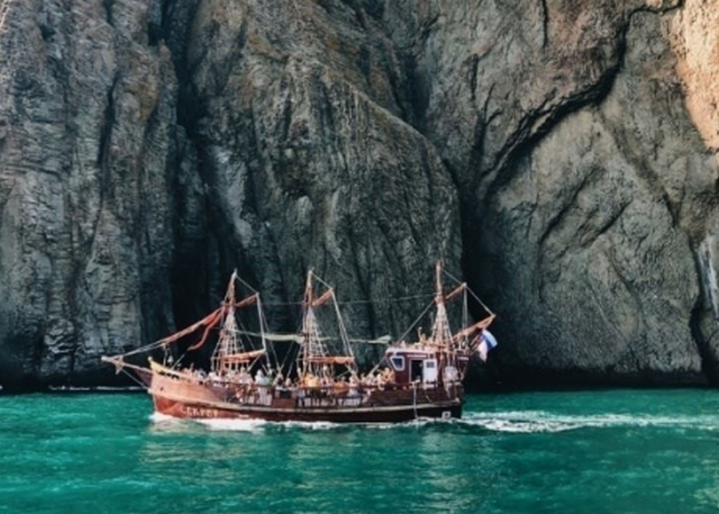 Возможно, самая зрелищная морская прогулка в Крыму. Могучий срез вулкана Кара-Даг. Много людей. Маршрут потоковый и гиды бывают уставшими. Здесь можно посмотреть на невероятные скалы. Загадать желание у арки Золотых ворот.